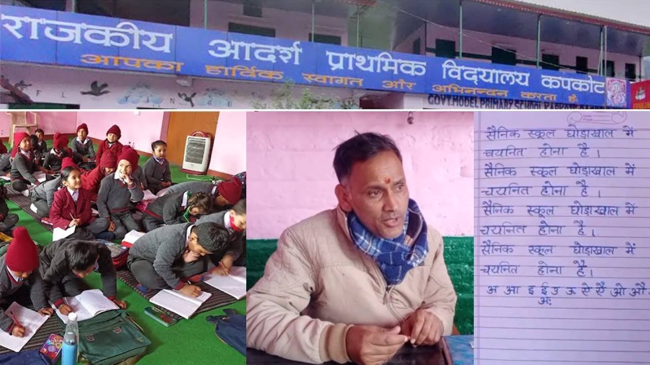 BAGESHWAR: पहाड़ का एकप्राइमरी स्कूल इन दिनों फिर से चर्चा में है। जिस स्कूल में ऐसा टीचर हो जो फ्री में कोचिंग संस्थानों से बढ़िया पढ़ाई करवाता हो, जहा के शिक्षक बच्चों की पढ़ाई को मिशन मानकर चलते हों। जहां बच्चों को सुलेख में यही लिखाया जाता हो कि उन्हें सैनिक स्कूल के लिए चयनित होना हो, वो स्कूल भला कैसे पीछ रह सकता है। हम बात कर रहे हैं बागेश्वर जिले के राजकीय आदर्श प्राथमिक विद्यालय कपकोट की। पिछले महीने सैनिक स्कूल में प्रवेश के लिए एंट्रेंस एग्जाम हुआ था। जब इसके नतीजे आए तो कपकोट की स्कूल का परचम लहरा रहा था। इस स्कूल के एक-दो नहीं बल्कि एक साथ 22 बच्चे सैनिक स्कूल के लिए चयनित हुए हैं। आज देशभर में पहाड़ के इस स्कूल की चर्चा हो रही है। ये सब संभव हुआ है स्कूल के प्रधानाध्यापक के डी शर्मा की मेहनत और जज्बे के चलते।
