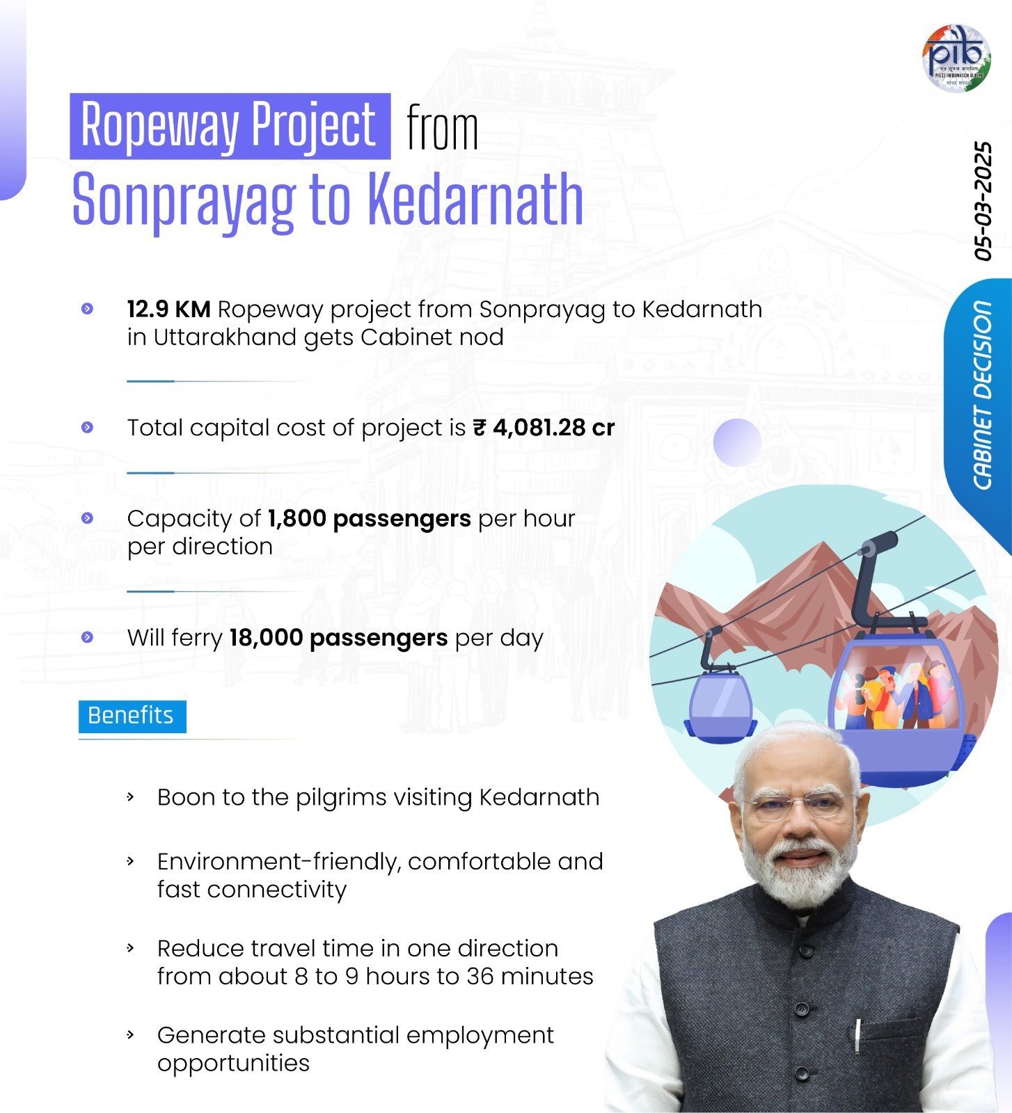 PM के दौरे से पहले उत्तराखंड को बड़ी सौगात, केंद्र ने केदारनाथ, हेमकुंड साहिब रोपवे के लिए ₹6,811 करोड़ किए मंजूर