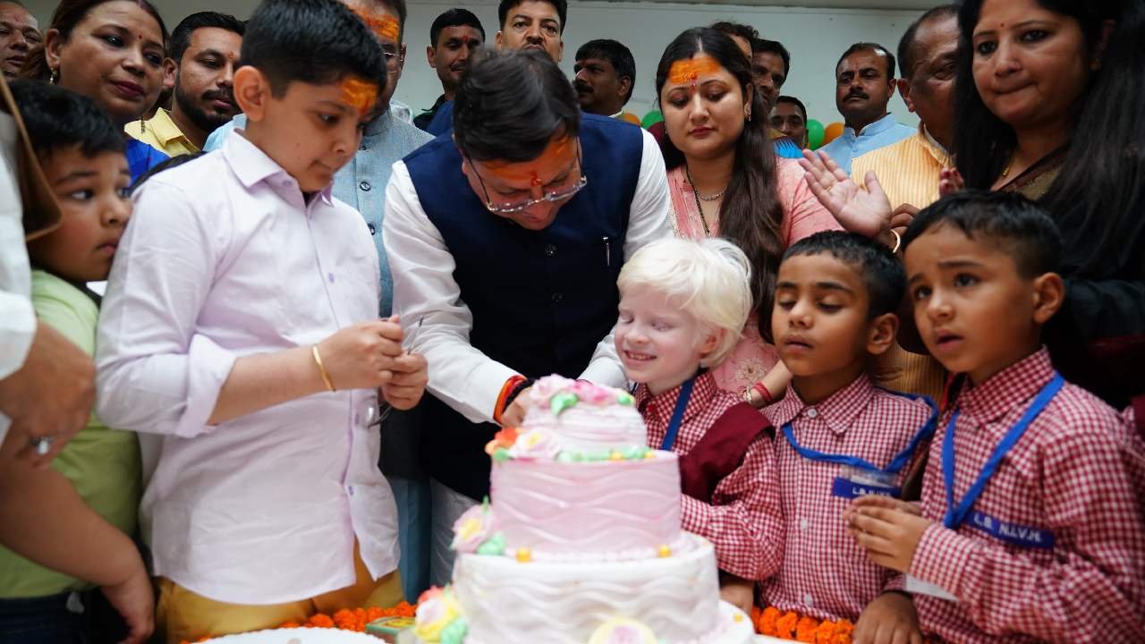 NIVH पहुंचकर सीएम धामी ने दृष्टिबाधित दिव्यांग बच्चों के साथ काटा केक, बांटी जन्मदिन की खुशियां