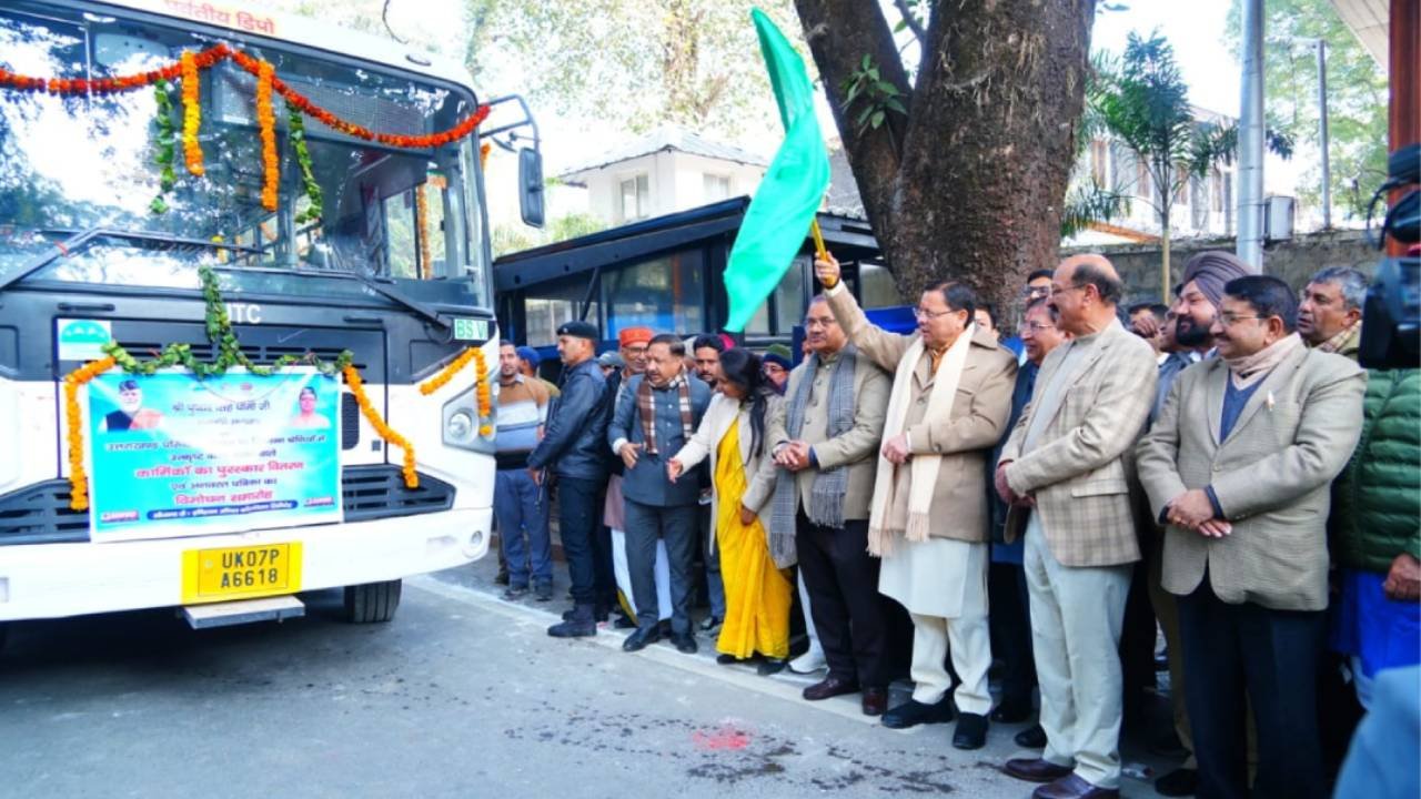 DEHRADUN: उत्तराखंड परिवहन निगम के बेड़े में 100 नई बसें शामिल की गई है। इन बसों को नववर्ष के अवसर पर मुख्यमंत्री पुष्कर सिंह धामी ने मुख्यमंत्री कैम्प कार्यालय से फ्लैग ऑफ किया। इस अवसर पर मुख्यमंत्री ने 10 ए.सी. एवं 2 स्लीपर अनुबंधित बसों को भी जनता को समर्पित किया। साथ ही उन्होंने परिवहन निगम की स्मारिका “अनवरत” एवं सड़क सुरक्षा पर आधारित कैलेंडर का विमोचन किया सीएम धामी ने कर्तव्यनिष्ठा और ईमानदारी से कार्य करने वाले कर्मठ कर्मचारियों को भी सम्मानित किया।