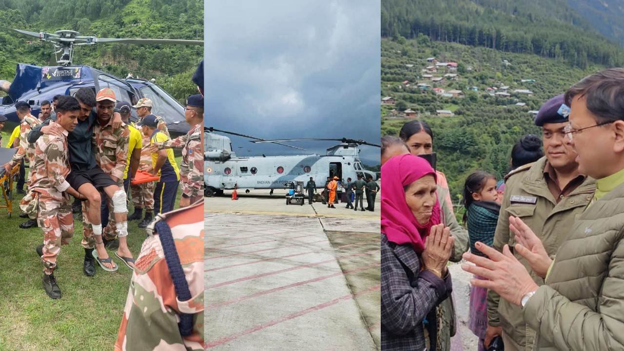धराली में मुश्किल हालात में जारी है रेस्क्यू, CM धामी ने जाना प्रभावितों का हाल, हर्षिल आर्मी कैंप से सेना के 11 जवानों का रेस्क्यू, चिनूक एक्शन में