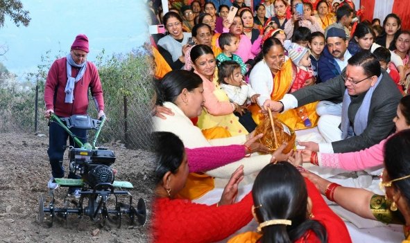 टिहरी में CM का अलग अंदाज, रात में ग्रामीणों संग लगाई चौपाल, सुबह सुबह खेत जोता