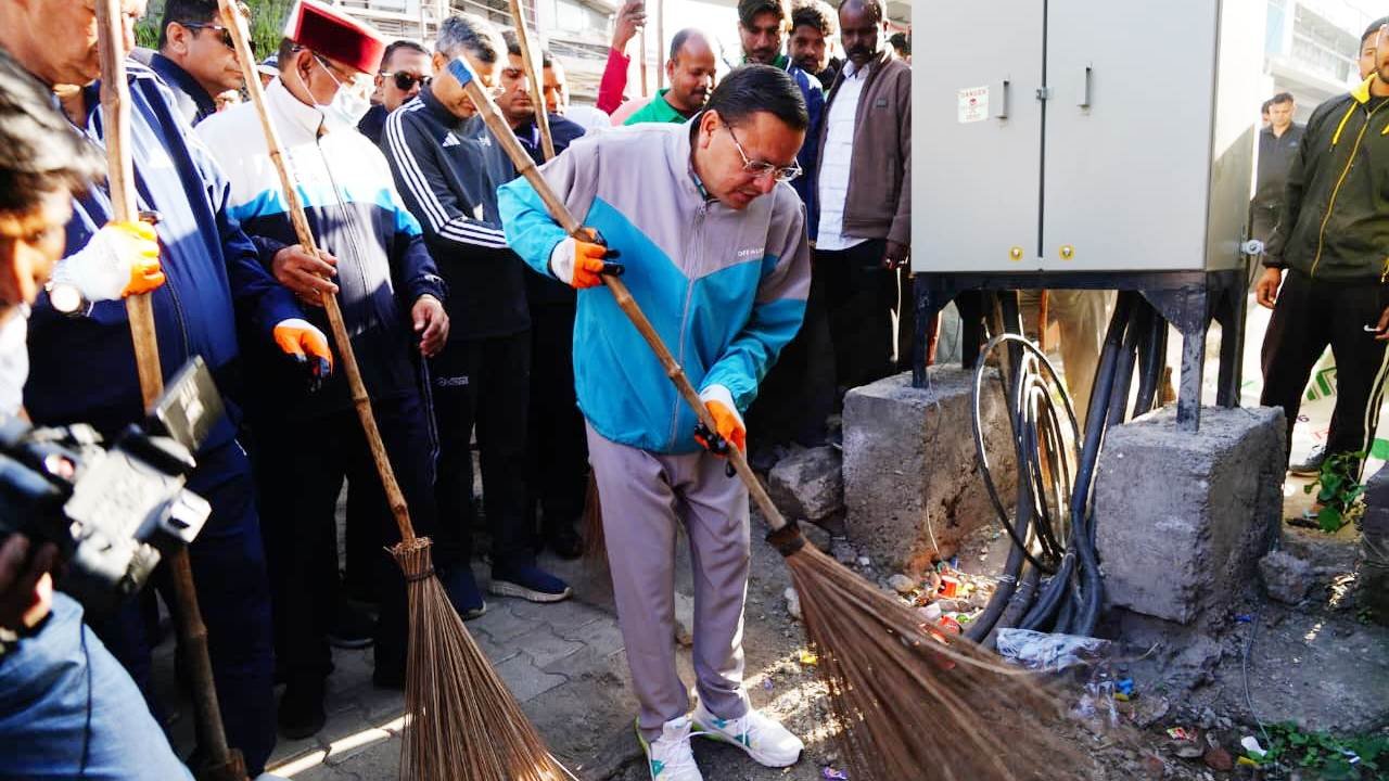 स्वेच्छा से स्वच्छता  कार्यक्रम में शामिल हुए सीएम धामी, झाड़ू लगाकर दिया स्वच्छता का संदेश