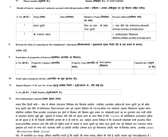 उप्रेती की शिकायत पर रानीखेत थाने में बवेजा और मुरारी के खिलाफ आपराधिक षढयंत्र की धारा 120-बी, धोखाधड़ी की धारा 420, दस्तावेजों में छेड़खानी की धारा 467, 468 और धारा 471 में मुकदमा दर्ज किया गया है। ये