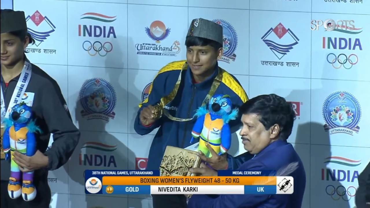 PITHORAGARH: 38वें राष्ट्रीय खेलों में उत्तराखंड एथलीट बेहद मुश्किल चुनौतियों से उभरकर खुद को साबित करने में जुटे हैं। बॉक्सिंग प्रतियोगिता में पिथौरागढ़ की निवेदिता कार्की ने गोल्ड मेडल हासिल किया है। निवेदिता ने 48 किलोग्राम कैटेगरी के फाइनल में हरियाणा की बॉक्सर कल्पना को 5-0 के अंतर से हराया। इस गोल्ड के साथ उत्तराखंड के 6 गोल्ड मेडल हो गए हैं और कुल 40 पदकों के साथ 13वें स्थान पर आ गया है।