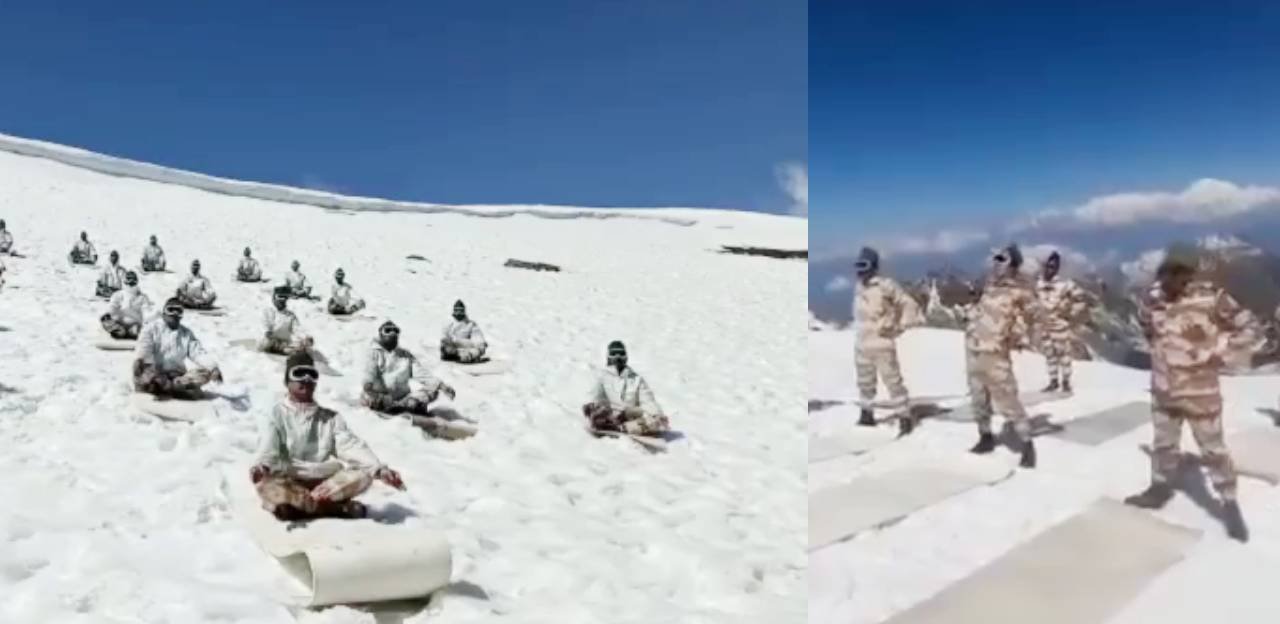 शून्य से नीचे तापमान, 15 हजार फीट की ऊंचाई पर हिमवीरों का योगाभ्यास