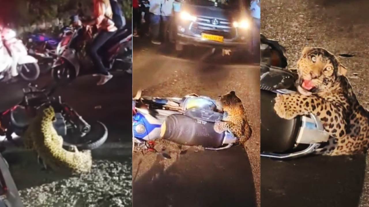 प्रत्यक्षदर्शियों के अनुसार, खुटानी रोड़ पर एक बाइक सवार अपनी पत्नी के साथ मंदिर से घर लौट रहा था। उसी दौरान तेजी से सड़क पार कर रहा एक तेंदुआ अचानक बाइक से टकरा गया। टक्कर इतनी जबरदस्त थी कि बाइक सवार संतुलन खोकर सड़क पर गिर पड़ा। हादसे के बाद तेंदुआ बाइक में ही फंस गया और घायल अवस्था में छटपटाता रहा। यह नजारा देखकर मौके पर अफरातफरी मच गई। आसपास के लोग घटनास्थल पर जुट गए और कई लोग अपने मोबाइल से वीडियो बनाने लगे। बाइक चला रहे व्यक्ति ने हालात को समझते हुए तुरंत अपनी पत्नी के साथ पास की एक दुकान में जाकर खुद को सुरक्षित किया। गनीमत रही कि दोनों को गंभीर चोट नहीं आई और वे तेंदुए के हमले से बच गए।
