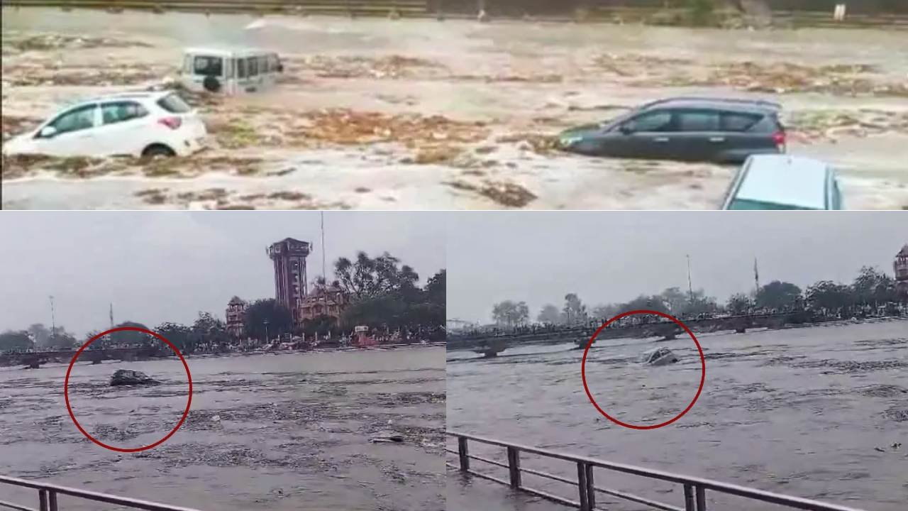 हरिद्वार: सूखी नदी में अचानक आया सैलाब और बहने लगे दर्जनों वाहन, हर की पौड़ी पर अटके कई वाहन