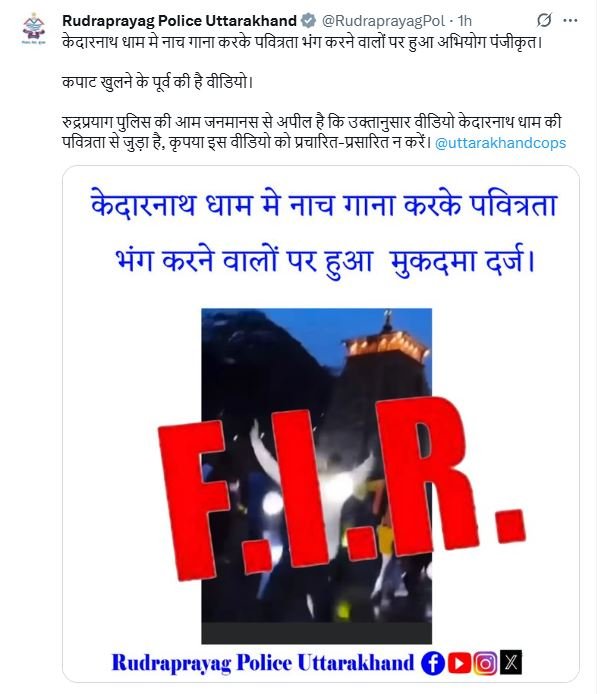 पुलिस ने जनमानस से अपील है कि उक्त वीडियो केदारनाथ धाम की पवित्रता से जुड़ा है, कृपया इस वीडियो को प्रचारित-प्रसारित न किया जाए।