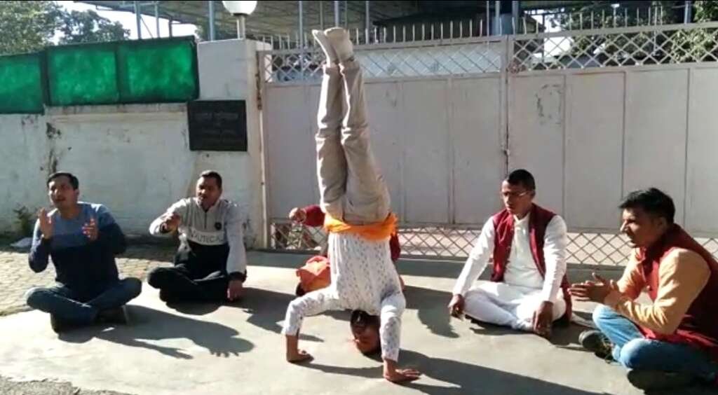 देवस्थानम बोर्ड के विरोध में मंत्रियों के आवास पर तीर्थपुरोहितों का शीर्षासन, उग्र आंदोलन की चेतावनी दी