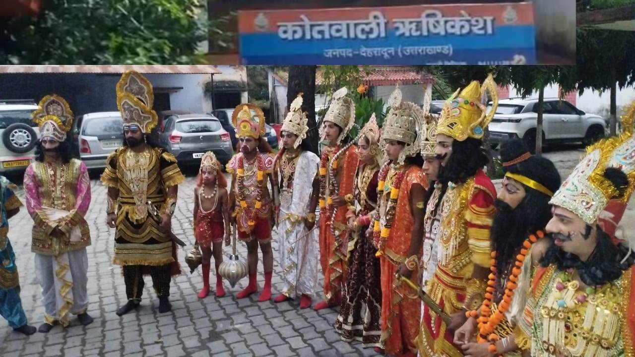 RISHIKESH: तीर्थनगरी ऋषिकेश में मंगलवार को एक अनोखा नजारा दिखा, जब राम लक्ष्मण, सीता, हनुमान औऱ रावण सहित तमाम पात्र रामलीला का मंचन छोड़कर थाने पहुंच गए। दिलचस्प बात ये थी कि ये सभी कलाकार अपने पात्र की पोशाक में प्रदर्शन करने थाने पहुंचे थे। प्रदर्शनकारियों का आरोप था कि उनकी रामलीला कमेटी पर फर्जी मुकदमें दर्ज किए जा रहे हैं और पुलिस प्रशासन जान बूझकर राम बारात निकाकने की अनुमति नहीं दे रहा है।