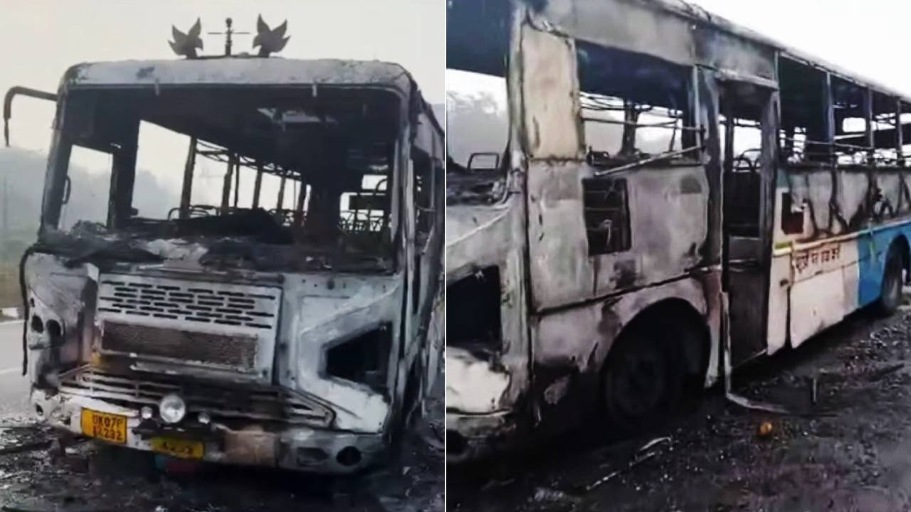 देहरादून:  चलती रोड़वेज में आग  लगने से यात्रियों में मची चीख पुकार,  बस जलकर हुई खाक