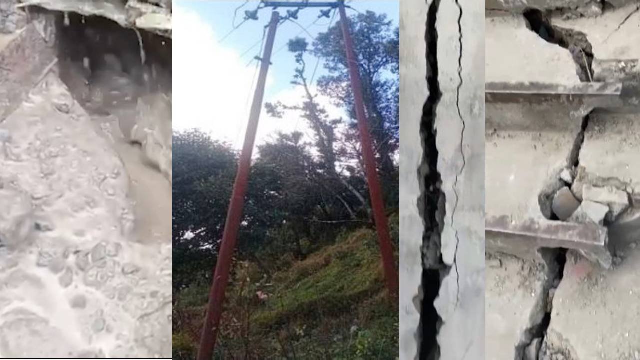 CHAMOLI: पौराणिक और ऐतिहासिक शहर जोशीमठ पर खतरा लगातार बढ़ रहा है। अब तक करीब 300 मकानों पर भू धंसाव से दरारें देखी जा रही थी, लेकिन अब हाईटेंशन लाइन के खंभे भी झुक गए हैं। यही नहीं जोशीमठ की तलहटी वाले इलाके में भी भारी दरारें देखी जा रही हैं। इन दरारों से पानी का रिसाव भी होने लगा है। वैज्ञानिकों की मानें तो जोशीमठ में किसी भी समय ब़डी त्रासदी दस्तक दे सकती है। समय रहते लोगों को बचाया नहीं गया तो बहुत बड़ा नुकसान हो सकता है।उधर मंगलवार को जिला प्रशासन ने 6 परिवारों को सुरक्षित स्थानों पर पहुंचाया है। (Threat by joshimath land sinking increase after HT bends, water sippet from cracks)