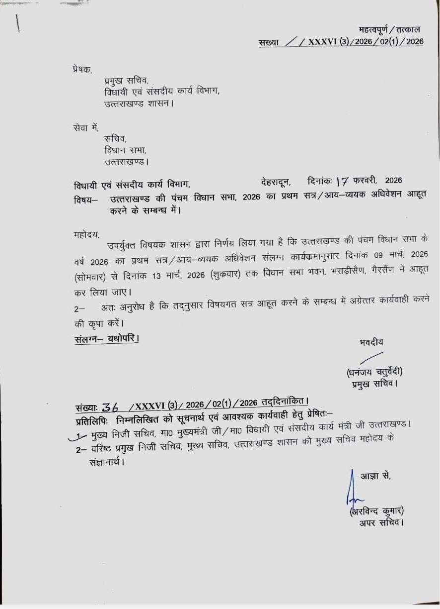 गैरसैंण में 9 मार्च से होगा 5 दिन का बजट सत्र, 11 मार्च को पेश होगा बजट